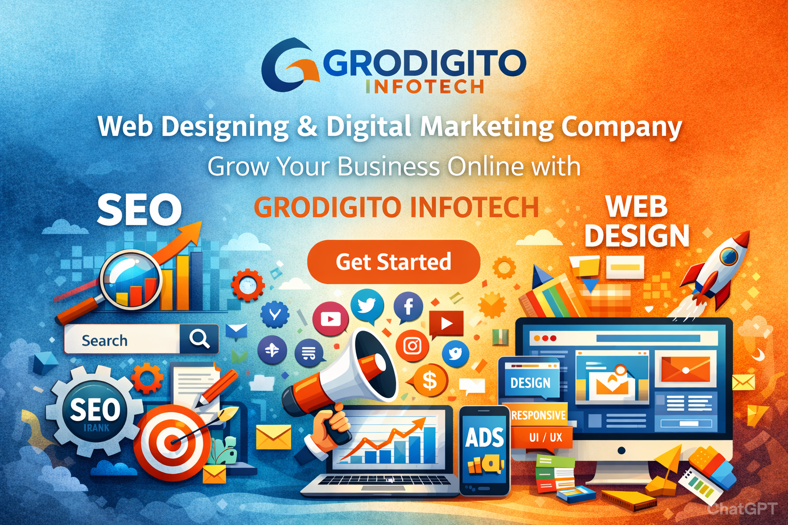 At Grodigito Infotech, we are passionate about helping businesses grow in the digital world. As a full-service digital marketing company, we specialize in web designing, web development, SEO, social media marketing, and branding solutions tailored to your needs.