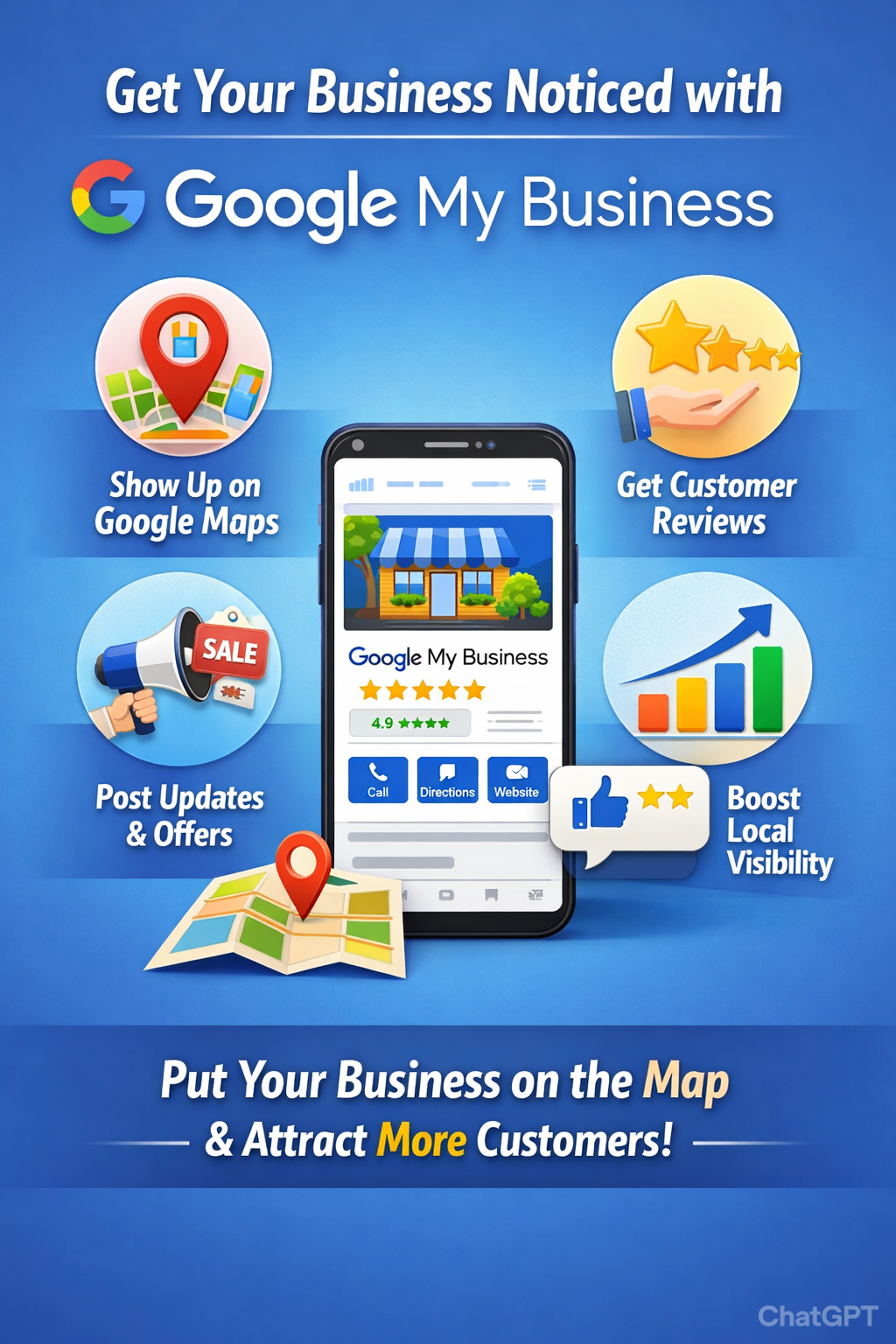 So customers can find your **address, phone, website, photos, reviews**, etc.
